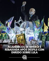 A Acadêmicos de Niterói terminou em último lugar e foi rebaixada do Grupo Especial do Carnaval do Rio de Janeiro na apuração realizada nesta quarta-feira (18). A escola havia desfilado com um enredo em homenagem ao presidente Luiz Inácio Lula da Silva (PT).