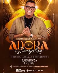 O cantor gospel Anderson Freire, conhecido por sucessos como “Raridade”, “Acalma o Meu Coração” e “Canção do Céu”, é a primeira atração confirmada do evento Adora Eunápolis. O encontro será realizado no dia 22 de maio, no Espaço Rondelli, no bairro Pequi.