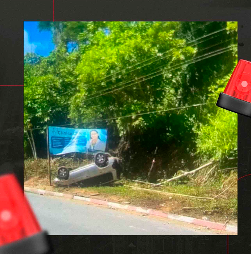 PAU BRASIL: Carro colide com poste e capota na entrada de Pau Brasil nas primeiras horas da manhã