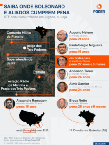 Em 25 de novembro de 2025, Moraes determinou o início do cumprimento das penas de Bolsonaro e de seis aliados condenados por tentativa de golpe de Estado. A decisão foi tomada após o encerramento do processo, sem possibilidade de novos recursos. O grupo havia sido condenado em 11 de setembro pela 1ª Turma do STF, com votos dos ministros Alexandre de Moraes, Flávio Dino, Cármen Lúcia e Cristiano Zanin.