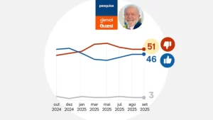 A pesquisa Genial/Quaest divulgada nesta quarta-feira (17) mostra que a desaprovação ao governo do presidente Luiz Inácio Lula da Silva (PT) segue alta em meio a um momento de muitas incertezas no país. Em setembro, 51% dos entrevistados disseram desaprovar a gestão, contra 46% que aprovam e 3% que não souberam responder. Os números são praticamente os mesmos de agosto, indicando uma estagnação na avaliação do governo.