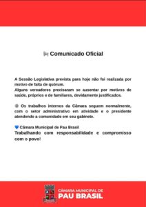 Por isso, é urgente que o Legislativo de Pau Brasil reestabeleça a normalidade dos trabalhos, comunique com antecedência quaisquer alterações e reconstrua a confiança da população, que espera — e merece — ver compromisso e trabalho de seus representantes.