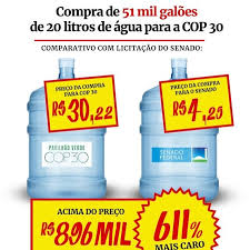 O governo do presidente Luiz Inácio Lula da Silva (PT) organizou uma licitação para comprar galões de água para a 30ª Conferência da ONU sobre o Clima (COP30), prevista para novembro de 2025, em Belém. Os preços chegaram a ser até 611% mais altos do que os praticados em outras compras públicas. O possível prejuízo seria de até R$ 896 mil.