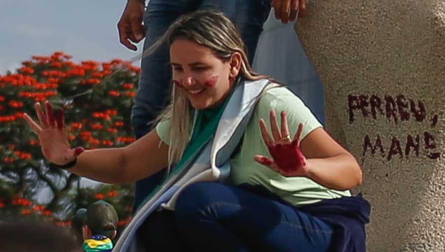 Débora é investigada por envolvimento nos atos de 8 de janeiro de 2023. Na ocasião, ela escreveu “Perdeu, mané” no monumento, em referência ao presidente do STF, Luiz Roberto Barroso.