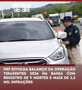A Polícia Rodoviária Federal (PRF) divulgou o balanço da Operação Tiradentes 2026 na Bahia, realizada entre os dias 17 e 21 de abril. Durante esse período, houve reforço na fiscalização e no policiamento nas rodovias federais do estado. Mesmo com queda em alguns números, os dados ainda preocupam pela gravidade dos acidentes.