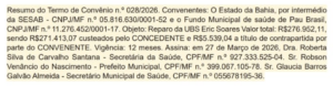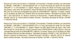 O município de Pau Brasil foi contemplado com um importante pacote de investimentos na área da saúde, totalizando mais de R$ 1,4 milhão, destinados à reforma e reestruturação de quatro unidades de atendimento. Os recursos foram oficializados por meio de convênios firmados entre o Governo do Estado da Bahia, através da Secretaria da Saúde (SESAB), e o Fundo Municipal de Saúde. De acordo com as publicações no Diário Oficial, os convênios possuem vigência de 12 meses e foram assinados em 27 de março de 2026, consolidando um avanço significativo na melhoria da infraestrutura da saúde pública no município.
