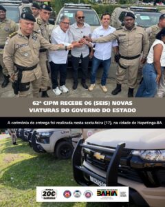 Na manhã desta sexta, no município de Itapetinga, ocorreu a solenidade de entrega de seis novas viaturas promovida pelo Governo do Estado da Bahia para reforçar o policiamento ostensivo da 62ª Companhia Independente de Polícia Militar (CIPM). A ação integra o conjunto de iniciativas estaduais voltadas ao fortalecimento da segurança pública e melhores condições de trabalho aos policiais, além de proporcionar mais proteção à população.