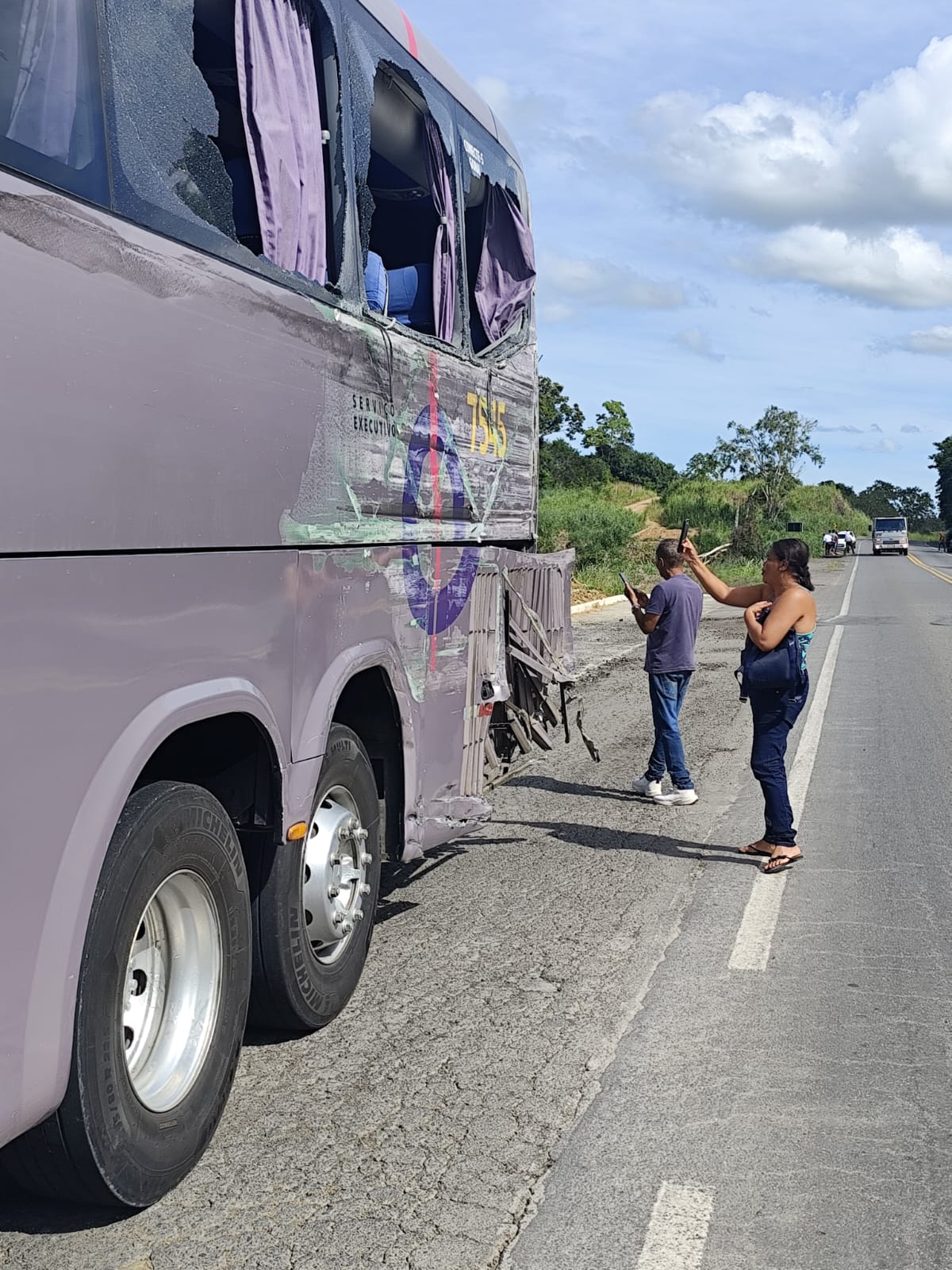 Após a colisão com o ônibus, o caminhão teria atingido outros dois veículos, ampliando ainda mais a tensão no local do acidente. O momento foi descrito pelos passageiros como de muito medo, angústia e tensão. Vídeos que chegaram à redação do Sul Bahia Debate mostram várias janelas do ônibus quebradas, evidenciando a força do impacto.