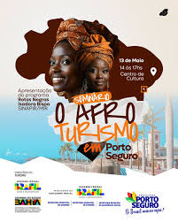 No dia 13 de maio, das 14h às 17h, o Centro de Cultura de Porto Seguro recebe o Seminário de Afroturismo. O evento contará com a presença de representantes do Ministério da Igualdade Racial, do Ministério do Turismo e da Secretaria Estadual de Promoção da Igualdade Racial.
