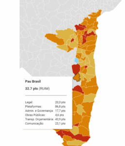 No cenário regional, o município de Pau Brasil obteve 32,7 pontos, sendo classificado como “insuficiente”. O desempenho revela avanços pontuais, mas também evidencia grandes desafios estruturais relacionados à divulgação de dados orçamentários, controle interno e participação social.