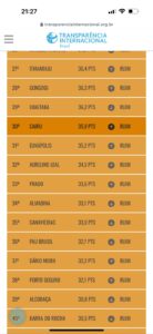 | Pau Brasil | 32,7 | Ruim | Situação ainda preocupante, 36º lugar no ranking. |