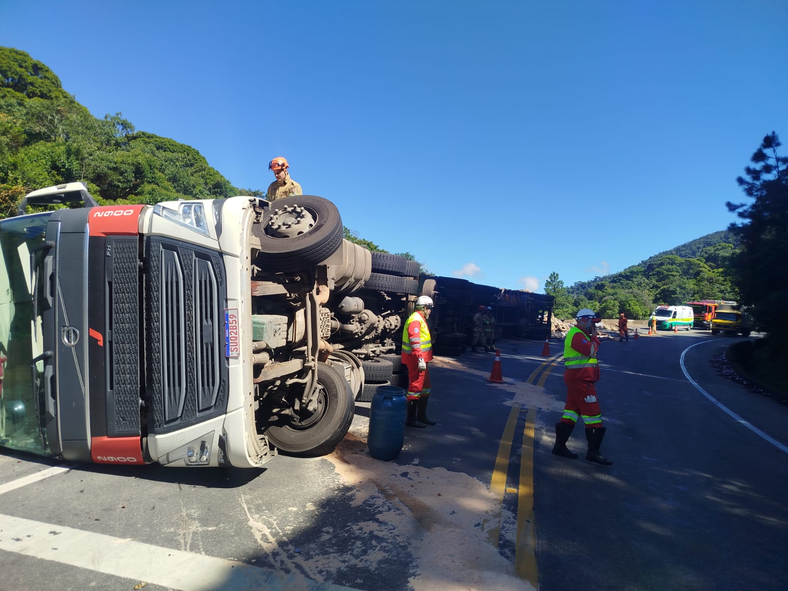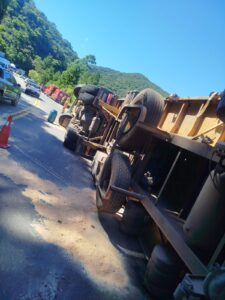 Carreta da Empresa Jolivan tomba na Serra de Petrópolis e causa congestionamento