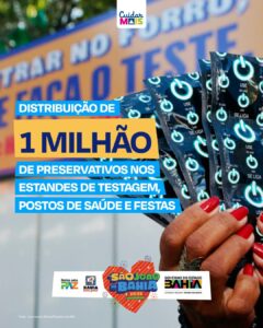 Entre as ações, estão a instalação de 13 estandes para testagem rápida de HIV, sífilis e hepatites B e C. Um deles será em Salvador, e os outros em cidades com festas tradicionais de São João, como Amargosa, Cruz das Almas, Senhor do Bonfim e Ibicuí. A capital também contará com três postos de saúde temporários no Pelourinho, em Paripe e no Parque de Exposições.