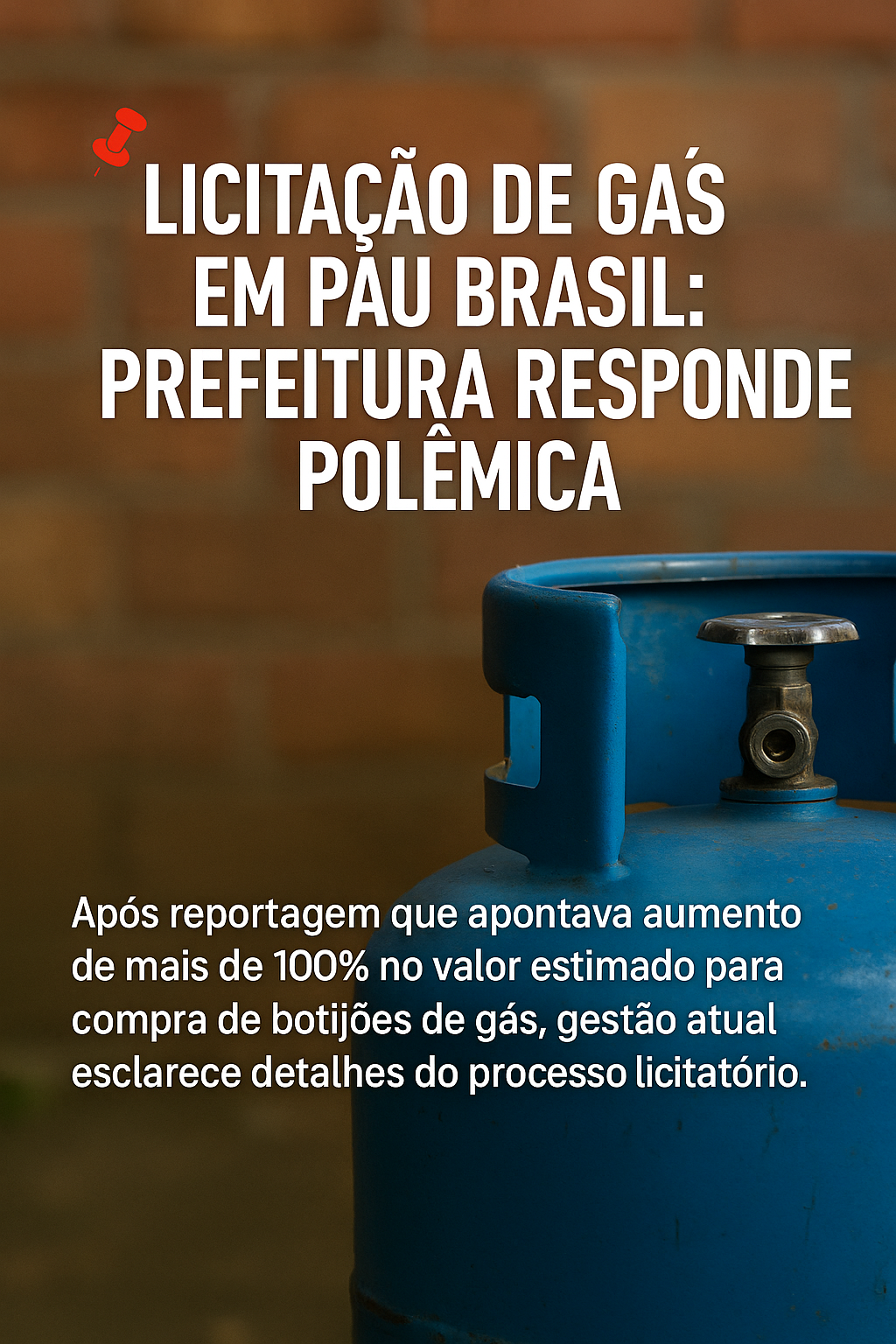 PAU BRASIL: Prefeitura emite nota de esclarecimento sobre licitação de gás: valor final foi menor que o estimado